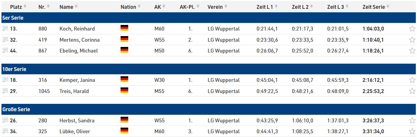 2. 10071 Ewout Hilferink 1979 M LG Wuppertal 16:57 4. 10067 Benjamin Lehmbach 1980 M LG Wuppertal 18:16die M50 sehr stark besetzt! Um 2s geschlagen reichte es aber für Bronze