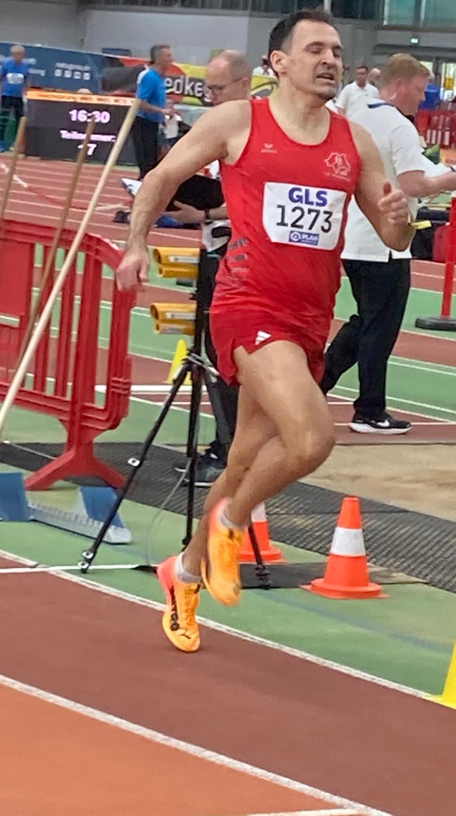 Am Freitag starteten wir mit den 800 Metern. Harald Damm (M65) erwischte ein gleichmäßiges Rennen und verbesserte seine persönliche Bestzeit um ganze fünf Sekunden auf 2:44,47. Er belegte den 6. Platz. Benjamin Lehmbach (M45) überlegte zunächst, ob er antreten solle, da ihn eine Verletzung geplagt hatte. Mit nur vier Wochen Vorbereitung kam er auf Platz 7, Zeit: 2:16,35 und bestätigte damit die DM-Norm. David Fleschen (M40) lief anschließend in einem dichten Feld auf Platz 9 über 800 Meter, mit starken 2:10,47.n mit den 1500 Metern. David Fleschen lief erneut, diesmal auf Platz 6 in 4:35,49. Ewout Hilferink hatte sein DM-Debüt und wurde in einem Wimpernschlag-Zielspurt 5. in starken 4:28,09.