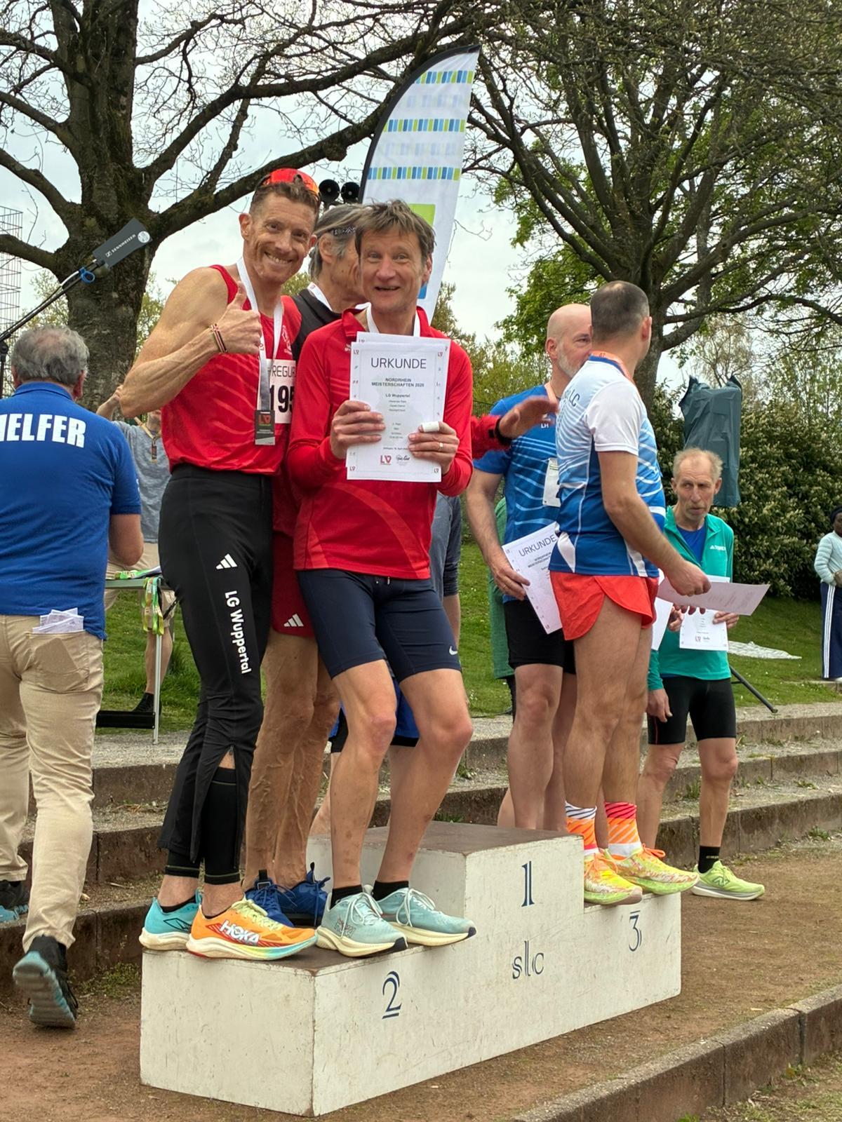 Ergebnisse 4x400m: 1. M40 LG Wuppertal 3:55,86 (Richert, Lehmbach, Fleschen, Krause) 1. M50 LG Wuppertal 4:28,61 (Palm, Madeddu, Koch, Damm) 3x1000m: 1. M40 LG Wuppertal 9:10,80 (Fleschen, Faassen, Lehmbach) 1. M50 LG Wuppertal 10:40,20 (Palm, Damm, Koch)Ergebnisse leichtathletik.de | PDF