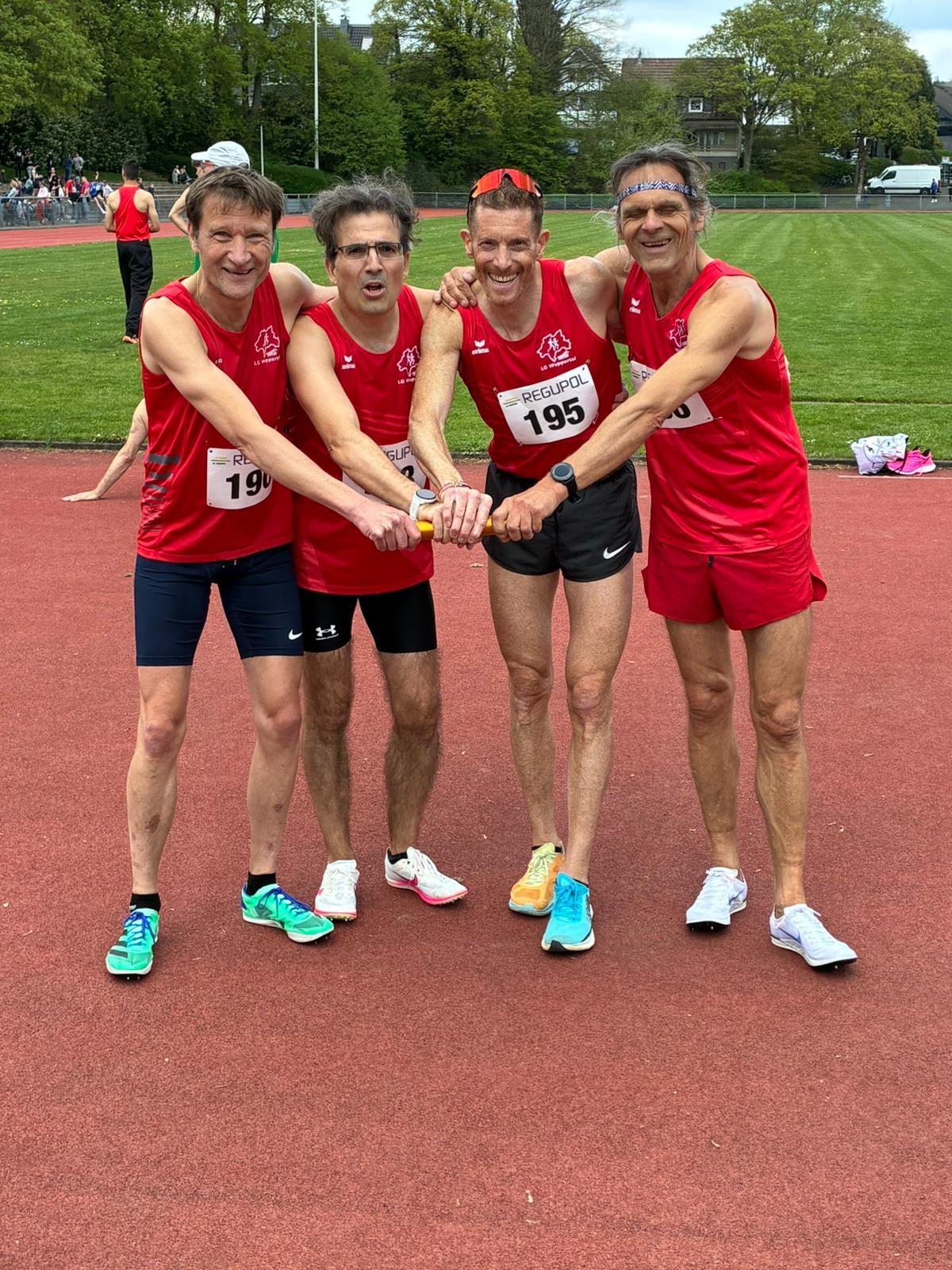 Unser M40-Team glänzt mit herausragender 4x400m Zeit bei den LVN-Landesmeisterschaften der Langstaffeln